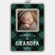 Celebrate his first Christmas as a grandfather with this sweet photo ornament featuring a baby photo framed by classic green and black buffalo plaid. "Promoted to Grandpa" appears beneath in white rustic lettering, along with the year.