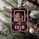 Celebrate his first Christmas as a grandfather with this sweet photo ornament featuring a baby photo framed by classic red and black buffalo plaid. "Promoted to Lolo" appears beneath in white rustic lettering, along with the year.
