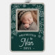 Celebrate his first Christmas as a grandmother with this sweet photo ornament featuring a baby photo framed by falling white snowflakes on a forest green background. "Promoted to Nan" appears beneath in white rustic lettering, along with the year.