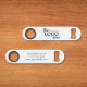 Promotional bottle opener for your company featuring your business logo and your custom text on the other side. The background and text colours can be changed to your brand colours by editing in the design tool or contact us at juliehortondesigns@gmail.com for assistance.