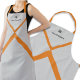 The Promotional Company Logo Name Orange Accents Grey Apron shows diagonal orange stripes and is designed as a template to easily replace company logo and name. It is part of the Grey Business Card Designs & Marketing Items collection. The grey work wear apron complements the professional collection as merchandise, reward, promotional gift, unifying workplace uniform or event promotion.