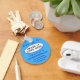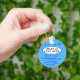 Promotional Keychains No Minimum with Your Image or Logo. Blue background and frame surround your own Logo Promotional products that are inexpensive yet keep your information right in front of your customers and future customers.