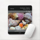 Promotional mousepad with your company name, phone number, your name and title, your web address and email address, your personal store, and something about your business, as a sophisticated design with a beautiful image that would be a pleasure to have on one's desk. The theme is beautiful nature. The image is of beautiful , colourful seashells and there is a black background. This makes a beautiful, classy gift for your precious client.