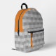 The Promotional Pixel Pattern Grey Orange Accents Printed Backpack is prepared as template to easily replace company logo and name. It is part of the Grey Business Card Designs & Marketing Items collection. The grey pixel patterned backpack complements the professional collection as merchandise or promotional gifts.