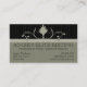 Proofreading service business card template with stylised leaf scroll over black and tan pinstriped background. Text fields are a layout suggestion and can be moved and edited. Choose your own font style, size and colour. Use the text field on the back for more information. Delete any text fields not used before submitting.