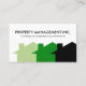 Real estate property management business card template in a modern and trendy two side design that highlights your company name on the front with house symbols in shades of green. Designed for Realty management services for residential or commercial properties.