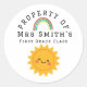Brighten up classroom supplies with this cheerful Property Of Classroom Sticker featuring a happy smiley sun illustration ☀️📚