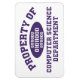 Property Of Computer Science Department - dark purple collegiate style lettering with binary code Xs.