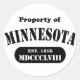 We've created this one in black text and in white, so it works on everything! The great state of Minnesota was established in the year 1858, and this cool design says so in bold text. It also says "property of Minnesota", so you can wear it on a shirt, on a button, bumper sticker, you name it. Play with background colours (non-apparel) and remember, you can always add text to ANY of our products, so this is a great design for your school, church or little league!