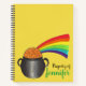 Spiral notebook design features an original marker illustration of a pot of gold at the end of a rainbow, and a shamrock and rainbow design on the back side. Simply personalise with your information for a unique St. Patrick's Day gift.
