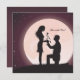 The silhouette of a couple caught, by the moonlight at an intimate moment, when he is on his bended knee proposing and offering her his love and a rose. A sweet invitation for an engagement party. br/>