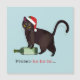 This Christmas card captures the comical antics of a mischievous cat during the festive season by depicting it playfully messing with a wine bottle, which ultimately gets it into trouble. The phrase 'Prosec-ho-ho-ho' cleverly combines the terms 'prosecco' and 'ho ho ho,' infusing a festive spirit often associated with the Christmas season.