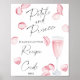 Watercolor elegant rose petals with glass of champagne and text "Petals and Prosecco".