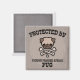 Cute tough little pug and crossbones with, "Protected by - vicious trained attack pug" lettering. Lightly distressed graphic, on t-shirts, hoodies, cards, gifts.