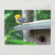 Postcard design features a photograph of a male Prothonotary Warbler claiming his nest box.
