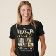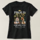 Graduation ceremony black & gold t-shirt featuring a graduates mortarboard, 5 photos for you to replace with your own, the saying "proud 2025 graduate", their name, and place of study.