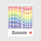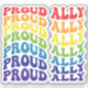 Show your unwavering support with this bold "Proud Ally" sticker featuring repeated text in vibrant rainbow colours. Perfect for LGBTQ+ allies who stand for equality, love, and inclusivity. Wear it with pride and spread the message of acceptance!