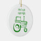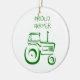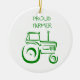 Christmas ornaments for farmers. Our customised holiday ornaments feature a green tractor and the saying Proud Farmers. These ornaments would make great gifts for farmers.