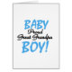 Proud Great Grandpa of a Baby Boy T-shirts, mugs, cards, stickers, tote bags, hoodies, and other great grandpa apparel and gifts wtih blue and black text.