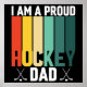 Proud Hockey Dad poster features several colours of green, off white, yellow, and rust orange on a black background with white text that reads I Am a Proud Hockey Dad!