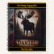 A striking wooden plaque features a grand moose, surrounded by tall trees, exuding a calm aura during twilight hours.