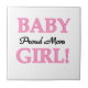 The proud mum of a baby daughter will love our Proud Mum Baby Girl keepsake boxes, tiles, ornaments, notebooks, stickers, tote bags, cards, magnets, and other items with pink text!
