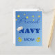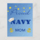 Proud Navy Mum Postcard - Features water drop background, a sailor hat and anchors.