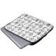 The sleeve is made of nice feeling material and seems very durable. I'm not sure how easy it'll be to clean, but the construction seems sound and the fabric is quick thick. I also like the double zipper. The printing is lovely and appears durable. The white on black contrast is nice, and the design very elegant.