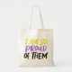 I am so proud of them tote bag written in yellow, white, purple, and black for nonbinary parents. Show your pride for your non-binary child with the non binary colours for a mum or dad.