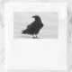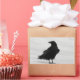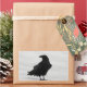 A Common Raven stands proudly against a snowy white background. The Raven is the official bird of the Yukon Territory, in northern Canada.