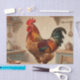 Bring rustic charm and a touch of whimsy to your home with this proud rooster standing boldly on a farmhouse kitchen table. Richly detailed feathers in warm browns, fiery reds, golden yellows, and iridescent teal shimmer under soft light, while the cozy background features wooden counters, copper pots, and vintage utensils. This heartwarming scene captures the essence of country living and adds cheerful personality.