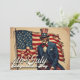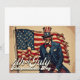 A weathered yet proud figure stands before a tattered U.S. flag—his presence a tribute to the enduring spirit of liberty, resilience, and the American dream. This image captures the essence of Independence Day with poetic dignity and patriotic strength.