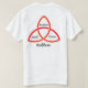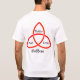 On the front: Pagan symbols of the three phases of the moon, the ouroboros, and a triquetra on a black background with the caption "PROUD TO BE A HEATHEN".