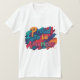 This t-shirt design features the phrase "Proud to be American" in bold, multicolored letters. Each letter is a different vibrant hue, creating a playful and eye-catching effect. The background is a dynamic, abstract pattern that complements the colourful text, making it a bold and patriotic statement.