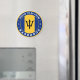 The national flag of Barbados is infused into a circle shape which itself, is colored in the flag colors. Along with decorative stars, there is the proud, patriotic text.