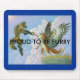 A mousepad for your averege computer and mouse with a cool picture and the words "proud to be furry"