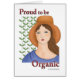 Original illustration by Sheryl Karas of a female organic farmer wearing a sunhat in front of a field of grain.