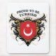 Cool crest design with national flag of Turkey colours and caption: Proud to be Turkish. Great Turkish pride gift.