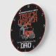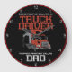 This wall clock beautifully conveys the dual pride of a truck driver. Against a black background with a red rim, it features an orange-red semi-truck illustration. The text "SOME PEOPLE CALL ME A TRUCK DRIVER THE MOST IMPORTANT CALL ME DAD" is prominently displayed in distressed white and orange-red fonts, highlighting the profound importance of fatherhood alongside the professional identity.
