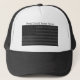 Moving dark distressed American Flag design with "Proud U. S. Patriot" at top on quality trucker hat. You can change the text if you want. Great gift for a Veteran, service member or anyone who wants to support our troops..