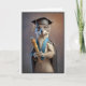 This graduation card shows an adorable portrait of a VERY proud weasel carrying his diploma and wearing his cap, sash, and gown on graduation day! The message inside says, "Go ahead and be proud of yourself. You deserve it! Congratulations Graduate."