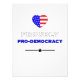 Heart with an American flag design at the top of the design. "Proudly" is written below that in bold, white typeface and black outline, with "Pro-Democracy" written below that in bold, blue letters. Beneath that is a small black star with lines on each side. Available in other sizes and paper finishes.