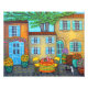 Colourful, romantic painting scene of a beautiful Provence village and a table for two in the courtyard with a nice bottle of Rosé wine by Lisa Lorenz. Now Available as a Fine Art Print.