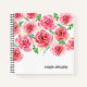 Chic floral notebook features a cascade of pink and red watercolor roses with your name or choice of personalisation in handwritten script lettering.
