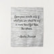 Lovely tapestry with a wise quote: "Open your mouth only if what you are about to say is more beautiful than the silence." Attributed to an ancient Arabic proverb. The tapestry has a light beige coloured, faded brick background to add depth and interest to the design.