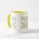 This two-tone mug features a chalga light print font with blue letters yellow outline showcasing the "Proverbs 1:7 KJV" bible scripture verse over a white background. This verse is referencing the Book Of Proverbs 1st chapter showing the 7th verse in this bible scripture quote theme from the King James bible. The rim & handle are glazed in matching colours available in 11-ounce or 15-ounce sizes microwave and dishwasher safe ceramic construction.