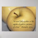 Scripture poster features this verse from the King James text: "A word fitly spoken is like apples of gold in pictures of silver." Proverbs 15:11 Photo shows close up of a golden delicious apple. Framing is available.