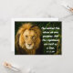 Inspirational quote scripture and prayer customised flat card depicts a wildlife photograph of an amazing lion. It features an encouraging portion of Bible Verse Proverbs 28:1, "The wicked flee when no on pursues, but the righteous are bold as a lion." The verse and prayer can be personalised to the details of your choice.