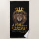 This beach towel features a dual bold print font with yellow and white letters displaying the "Proverbs 30:30" bible verse scripture and citation with the face of a lion wearing a king's crown above in the faith based theme. The front of this towel is a polyester blend, the back is 100% cotton with vibrant sublimation printing that is designed to last. Enjoy this towel for your next picnic, beach getaway or any outdoor activity you may attend all towels are machine washable with recommended low speed tumble dry.
