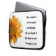 This feminine Bible verse laptop sleeve shows half a sunflower photo with the words of Proverbs 31:25 next to the flower. The words are easy to personalise and adjust to your favourite Bible verse or motivational saying. Proverbs 31:25 talks about how the ideal Christian woman is comfortable in her life now, dignified with no worries, and prepared for whatever the future brings. "She is clothed with strength and dignity; she can laugh at the days to come. Proverbs 31 :25"